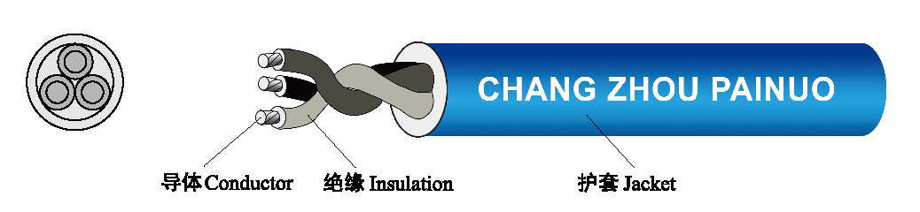 155℃ 輻照交聯阻燃聚烯烴絕緣交聯阻燃聚烯烴護套電機引接電纜(環保) |